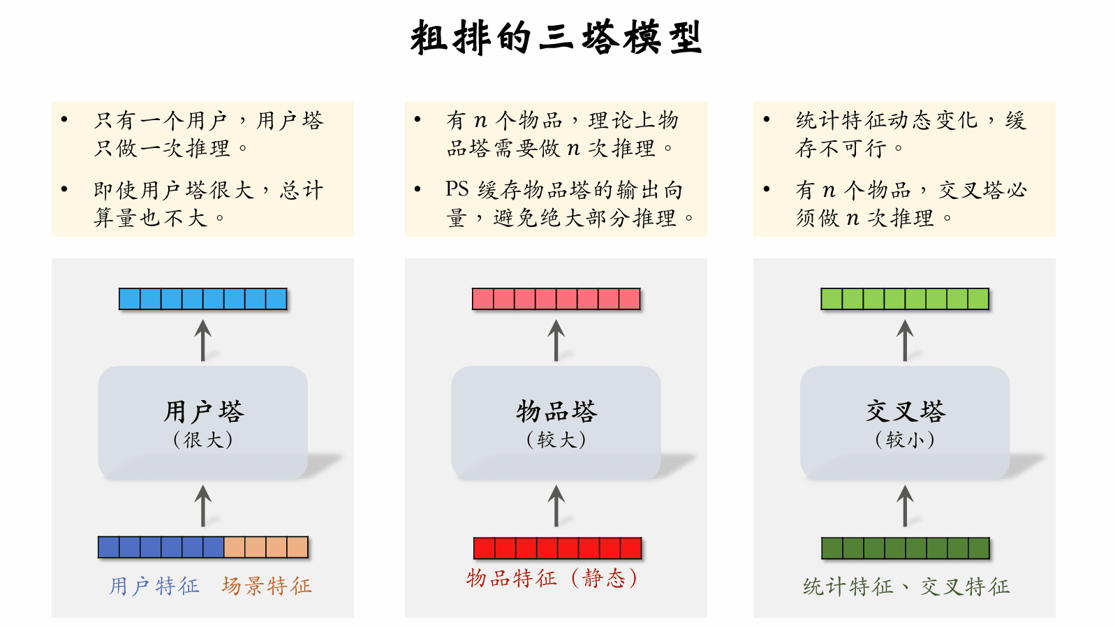 - 物品表征 b 事先储存在向量数据库中,物品塔在线上不做推理。